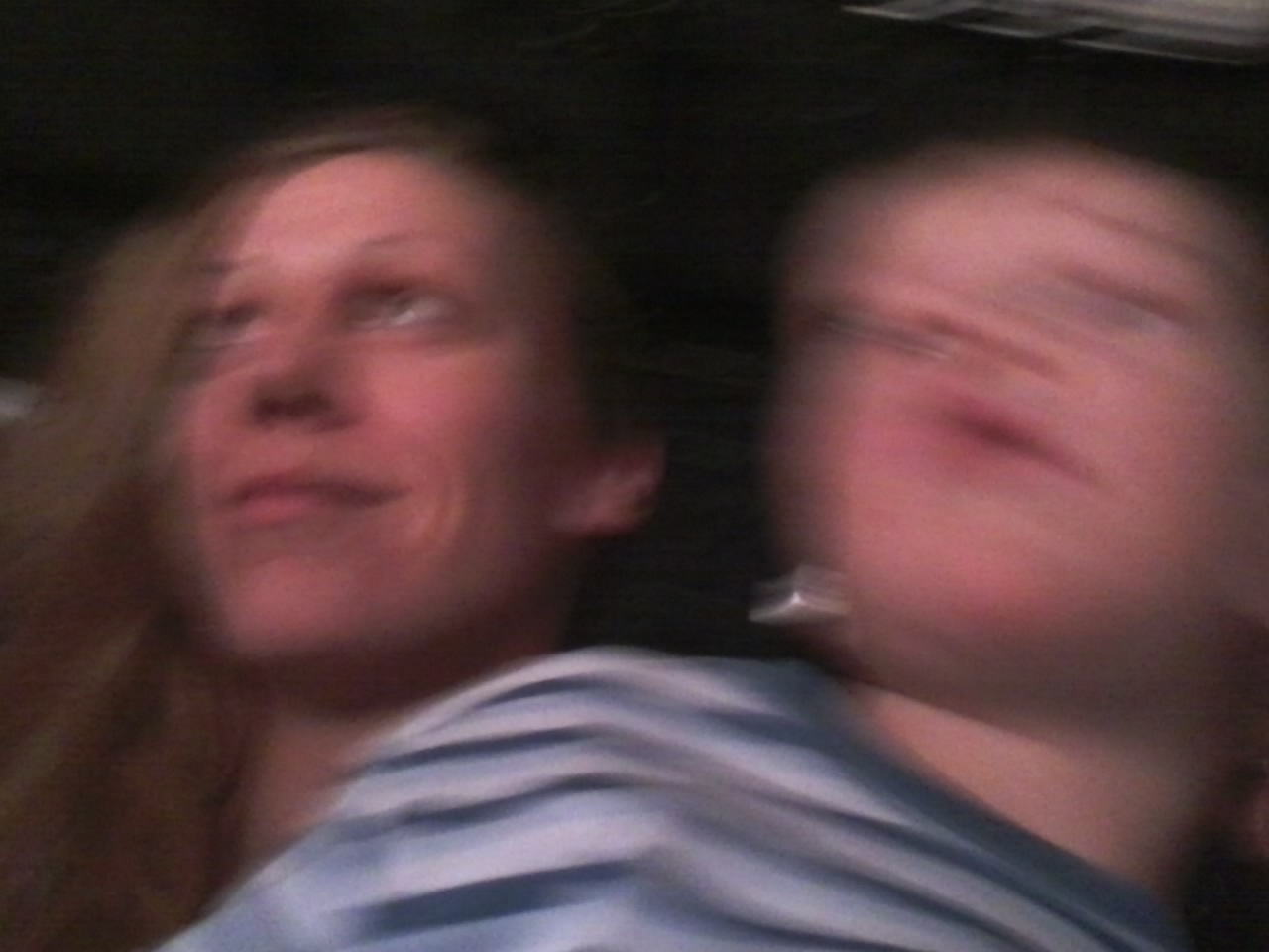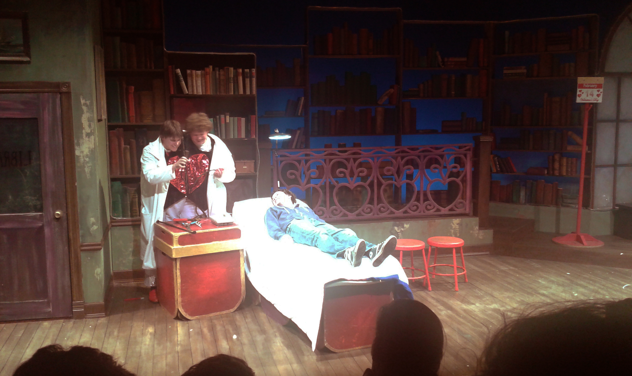 Then there is Gavin, whose mindset is apparently perfectly suited for some of the slapstick. Gavin’s laugh is as heavenly as his sister’s face. His giggles and guffaws make people around us laugh even more, not to mention the whole theatre when he hollers, “YOU GUYS ARE SILLY!” And when the conjoined twins launch into their first *interactive dance* number (their conjoined version of the “Macarena”), Gavin (having never heard the Macarena, as far as I know) gets so excited he *literally* falls out of his seat, head first, onto the floor. Shaken but undeterred, he brushes himself off per usual (to the amazement of some now somewhat familiar nearby audience members) and resumes the madness.