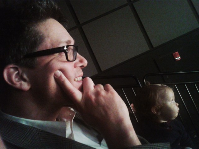 Then there is Paul’s cell phone. Having magnanimously volunteered to change the diaper of ClaraJane, who lovingly timed a stinkbomb to coincide with the beginning of the show (“Flying Diaper Change” in the Men’s room, anyone?), Paul arrives in his seat a little late and I forget to relay him the reminder about silencing cell phones. So yeah, we’re the numskulls who brought our kids in the first place, AND he gets to be THAT guy. Fast forward to later in the show, as I’m digging in and out of my “Everything Bag” (which might be called a “purse” or a “diaper bag” if it were either of those things, but it’s not) and somehow I set off MY phone, broadcasting some tune from Pandora! Did I mention this is an almost completely silent show? (Thus, physical comedy, glory be.) The jovial lady behind me teases us, “You guys are 0 for 2!” She is great and clearly enjoying our kids along with the show (although I can’t be so sure that is the case for the actors). Afterwards I humbly concur with her that yes, our children were better behaved than us.