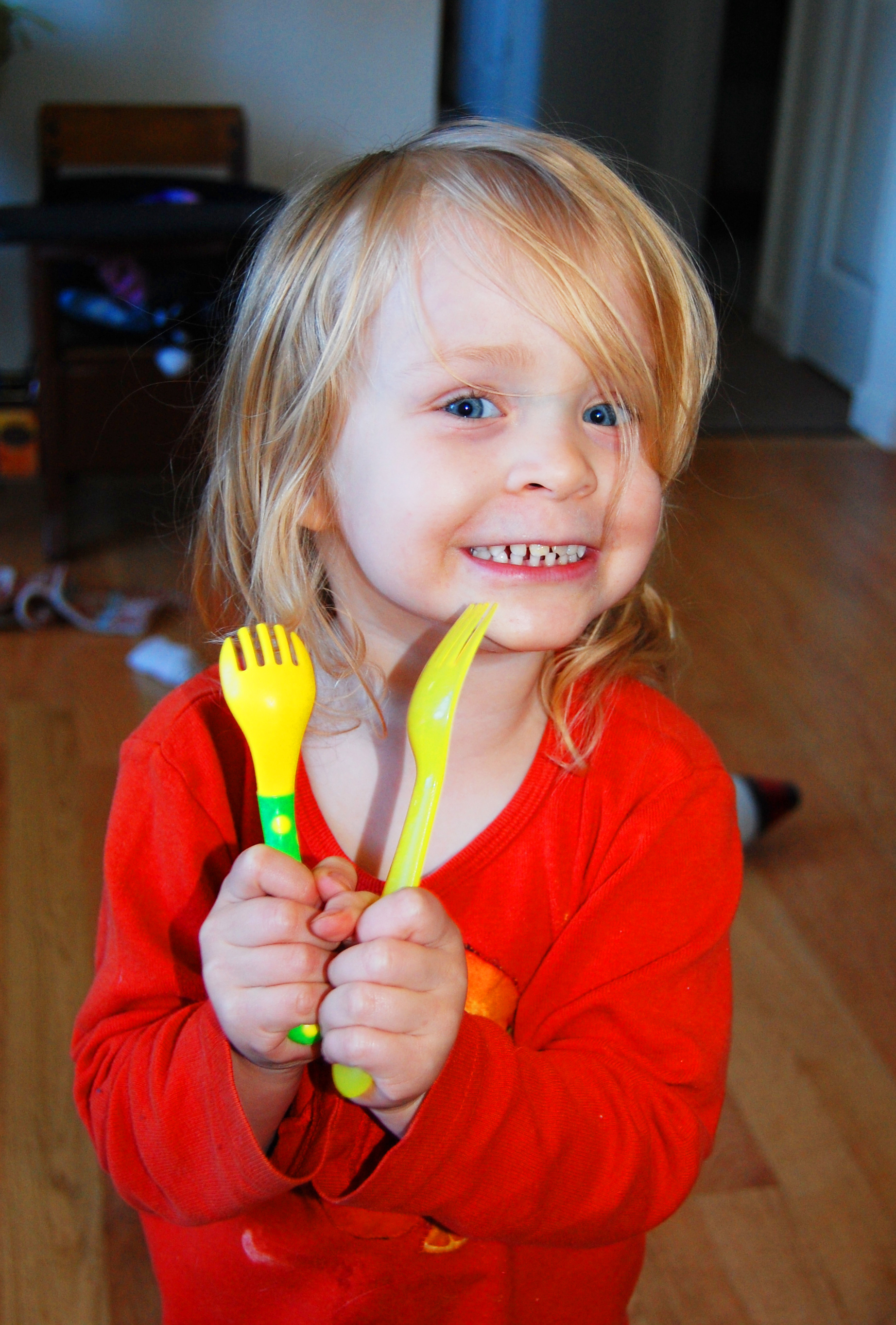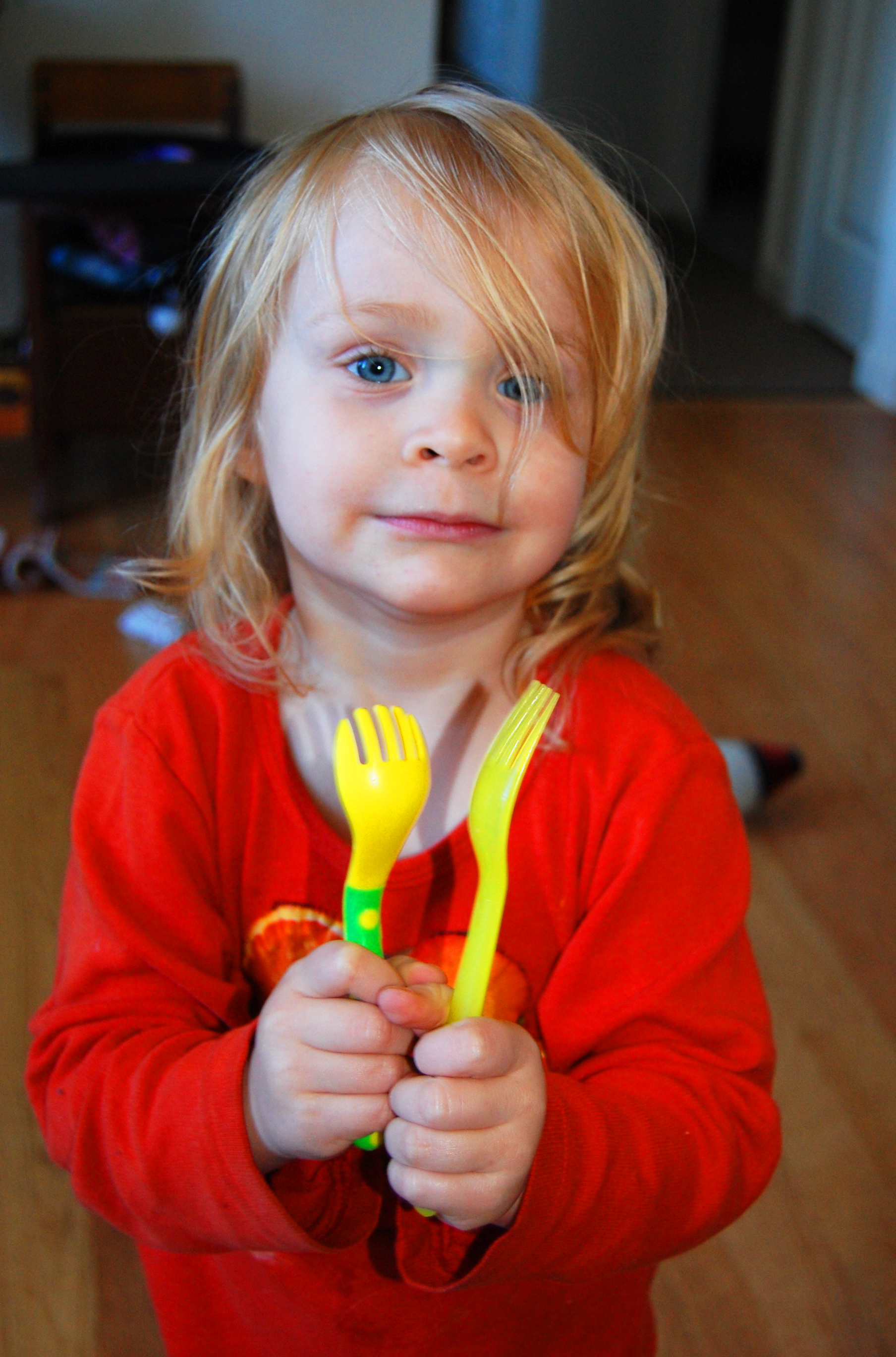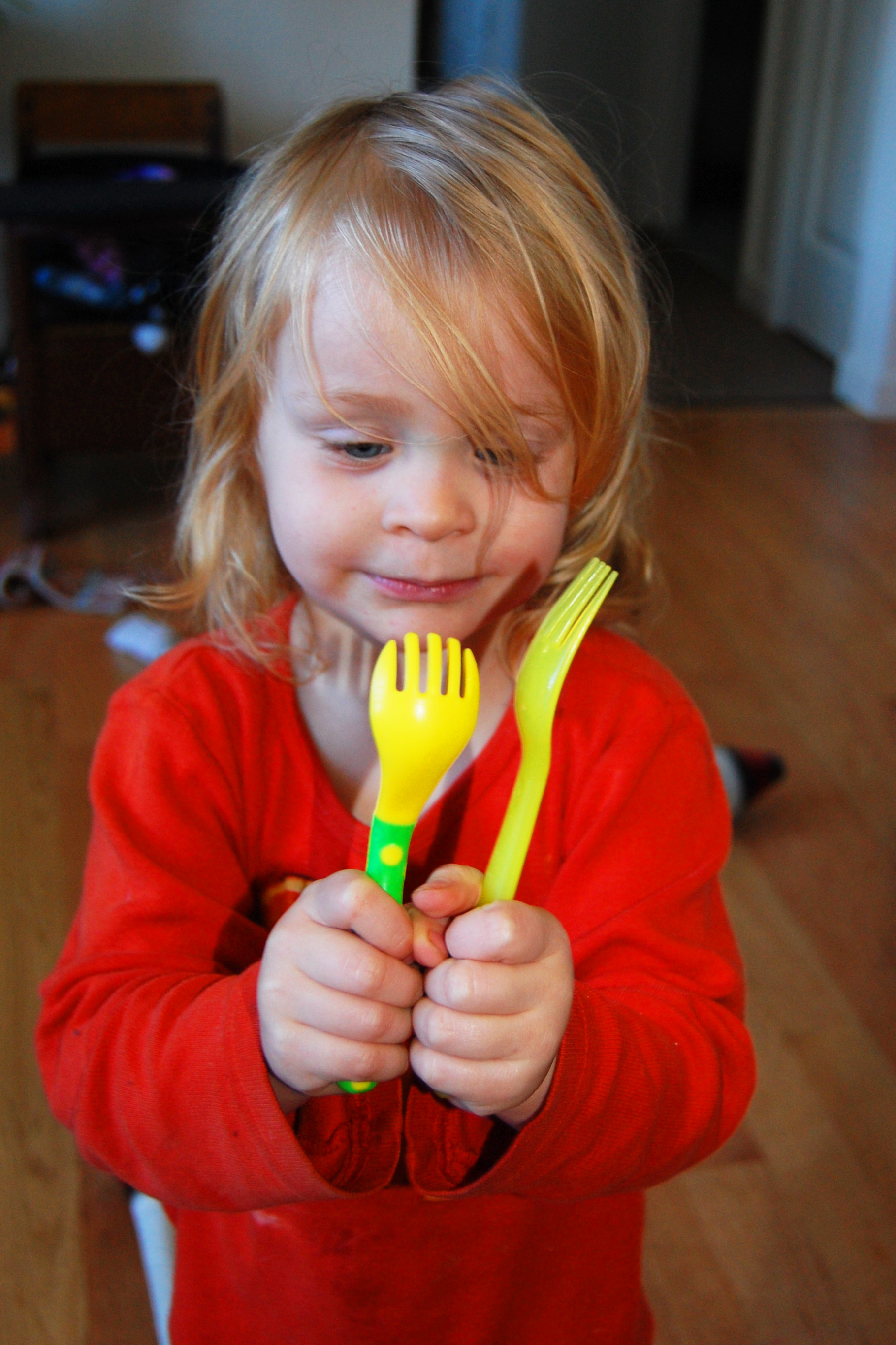 Anyway, here she is modeling her forks:
