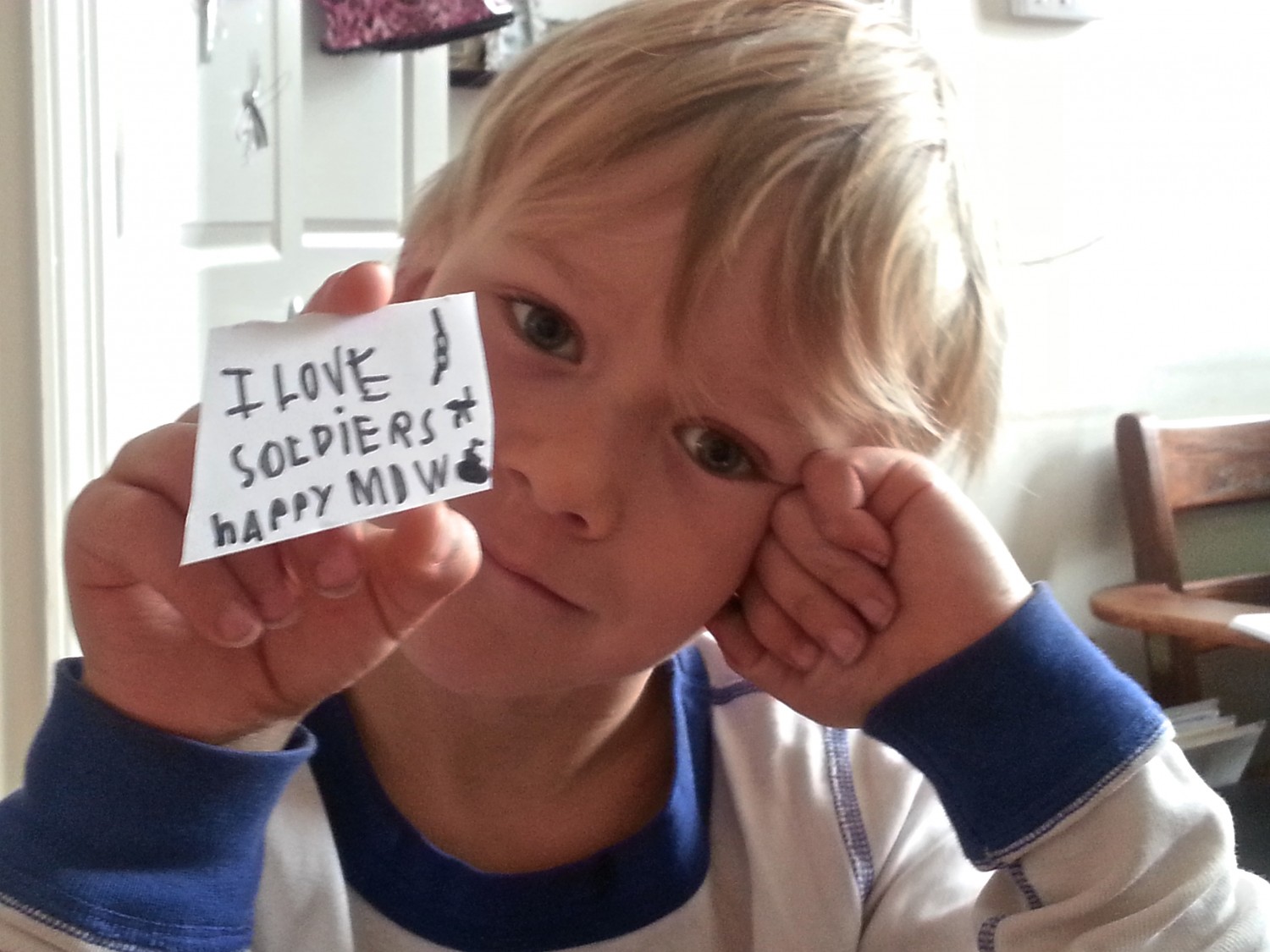 Gavin’s M D Book   I want to be a soldier.   Wars are cool.   I love soldiers.   Happy Memorial Day Weekend