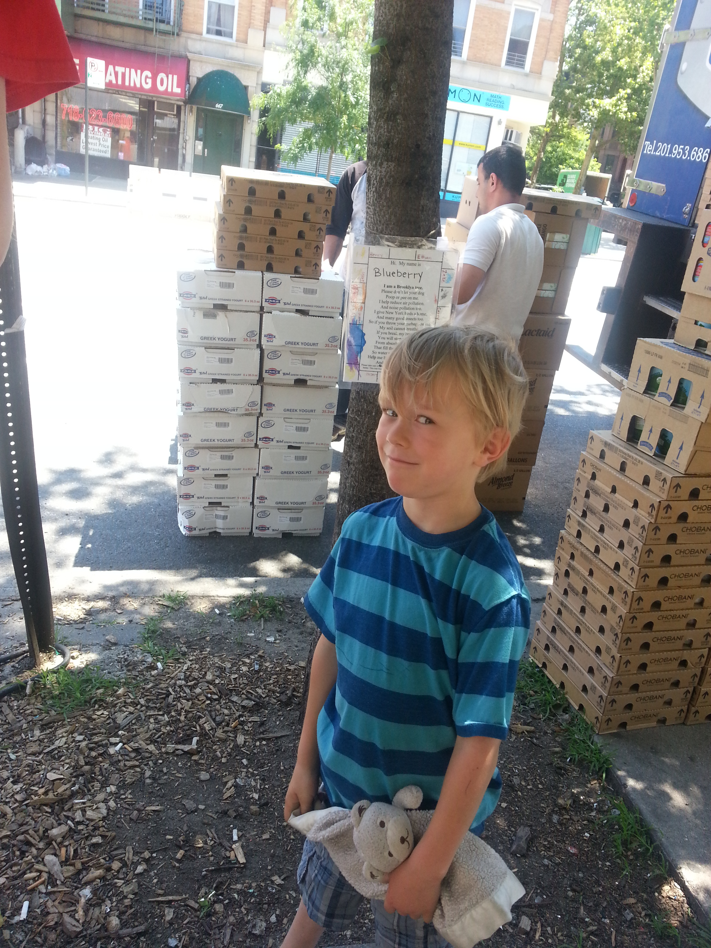 And being Brooklyn, of course, there’s a giant cargo truck unloading inches away. Is that guy feeding the trees yoghurt? Maybe that’s taking it a bit too far.