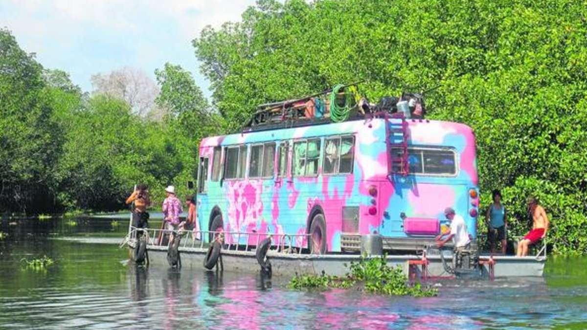 WHO ELSE would envision and just CREATE a BUS TOUR of grassroots CIRCUS ARTSISTS from Portland, Oregon (USA) down through Mexico, Guatemala, Honduras, Nicaragua, Costa Rica all the way to PANAMA, and BACK? To live Life’s Grand Adventure by bringing joy to obscure little towns and clean up trash? Just check out this photo of one of the many varied and dicey border crossings they executed: