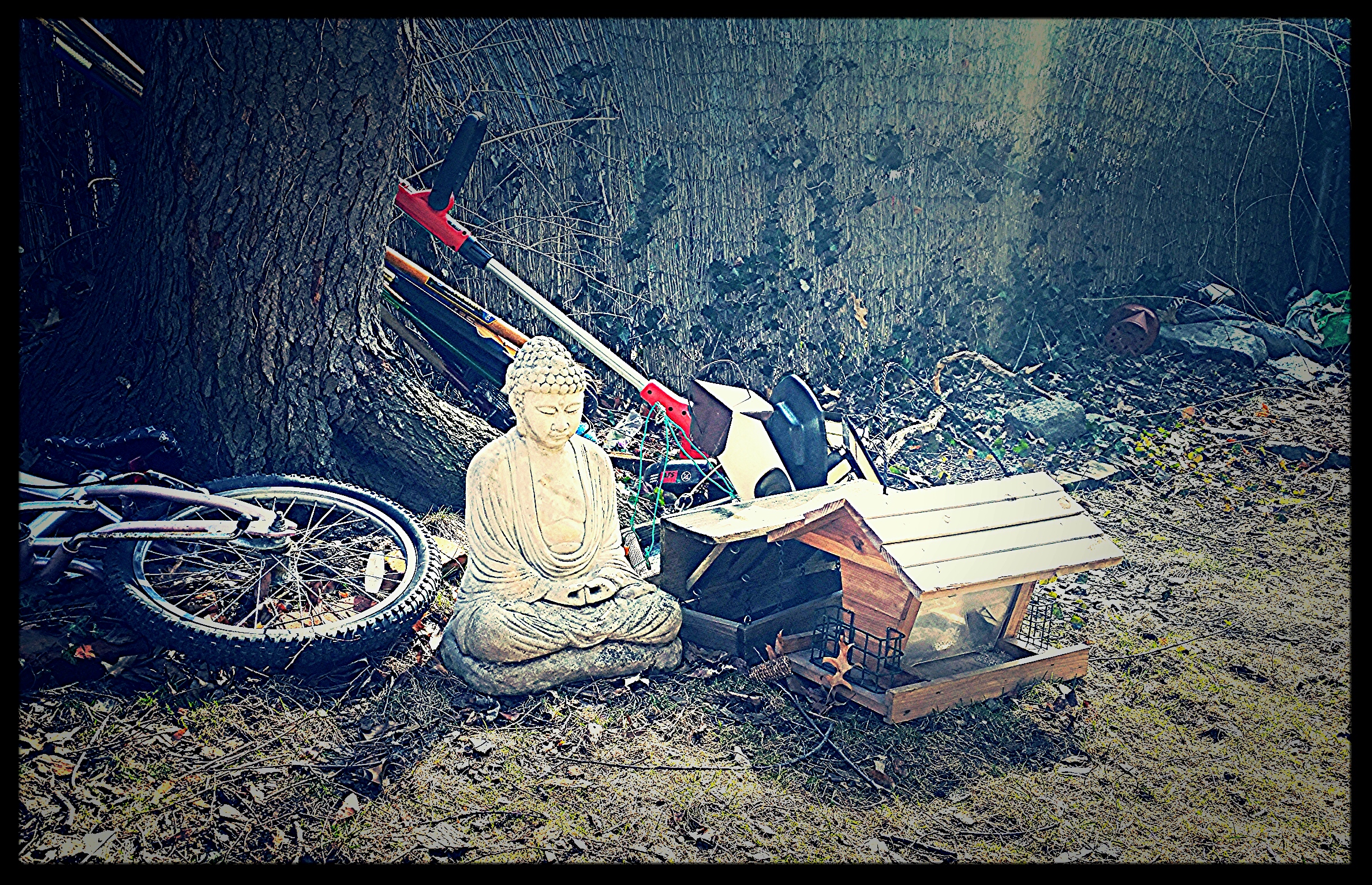 Given that these parents and I are among those aiming to foster Mindfulness within our community, I thought it particularly fitting to find this *serene* tableau in their yard: