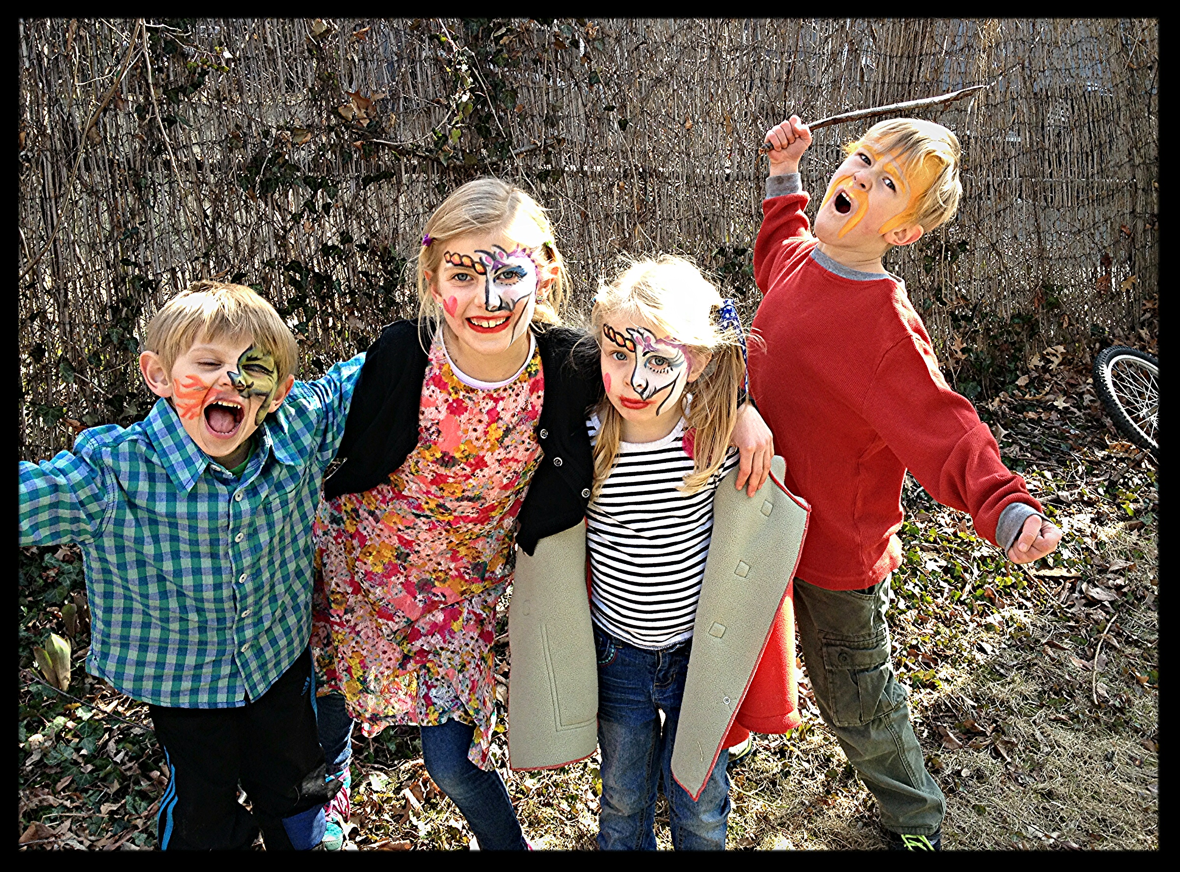 If you need to ask what that is, you are obviously not a kid. (Incidentally, the level of *blonde* in the school was way over-represented in the car this afternoon. In fact might have been 100% of them right there.) Then it wasn’t long before the oldest uttered the fateful words: “Jenny could you paint my face?”