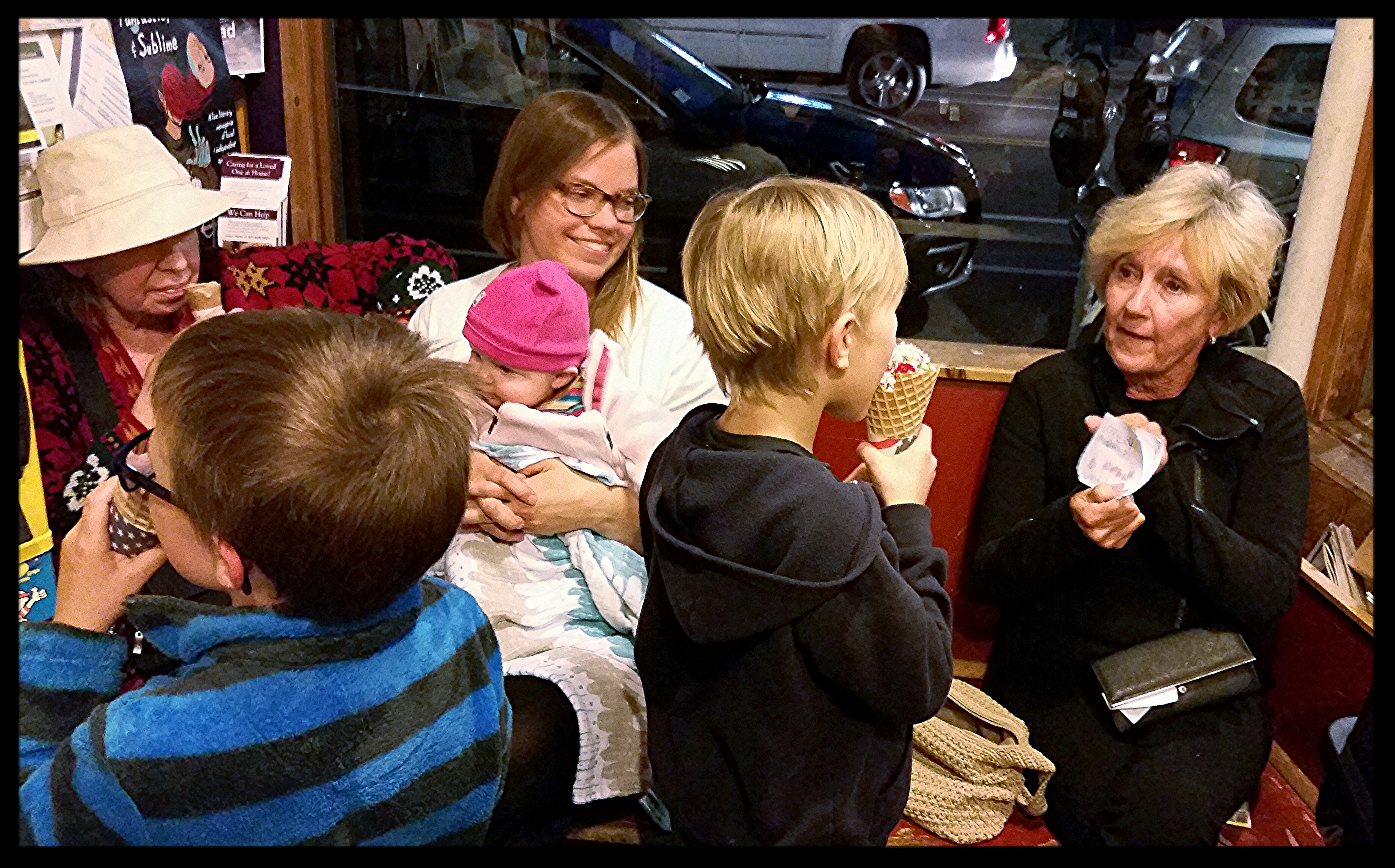 TWO Grandmas, two cousins, Auntie, an Uncle,  Mom, Dad & Sister.  So simple yet so very fun.  And our neighborhood retail strip is so dearly enchanting.  Seriously we need to do this more often!