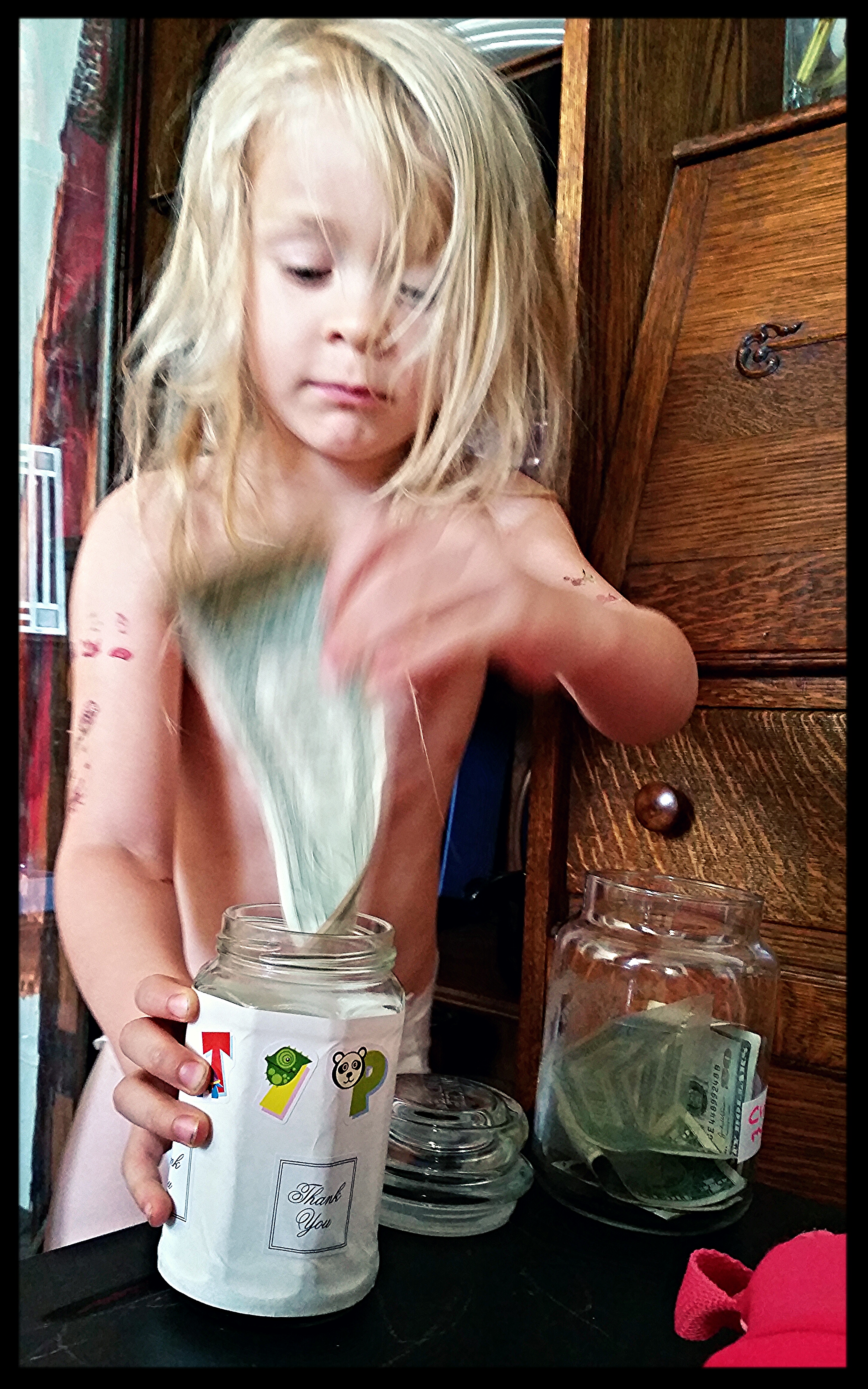 First thing in the morning, totally unprompted, she goes to transfer her tips into her personal bank savings jar.