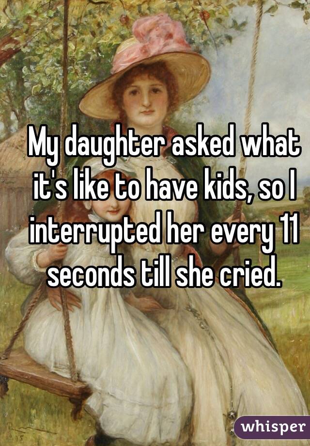 BWUAHA HA HA HA HA HA. I know I’m hilarious. And if I’m sounding like I’ve gone partially insane… did I mention I have KIDS? Oh but wait, not this second I don’t. OK enough ranting; coffee and shower for me. Wheeeee!!!!