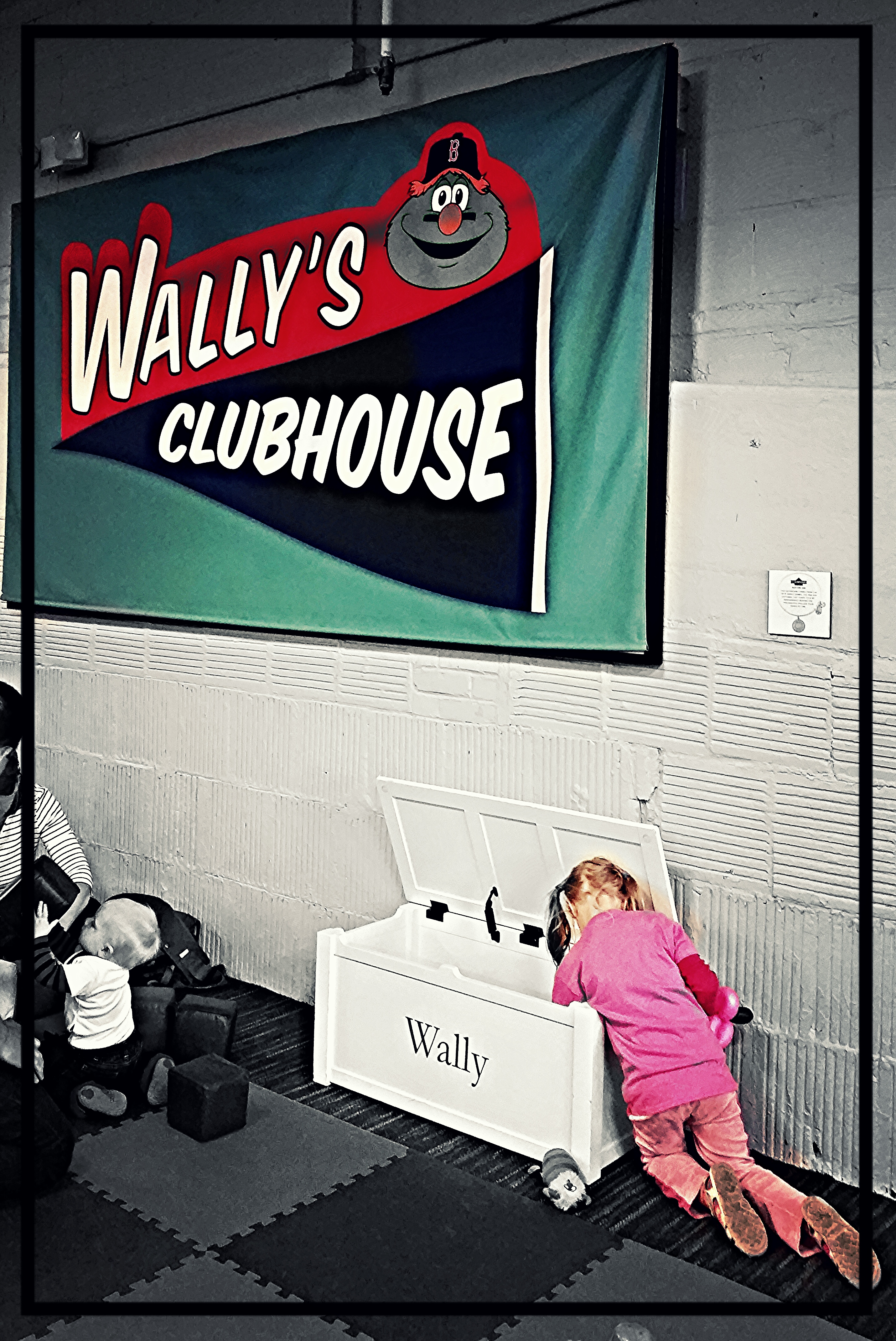 After some lovely time in the stands, the kids are ready to visit Wally’s Clubhouse, where we are greeted by the 9-foot Wally Balloon constructed for each each home game by my boss/agent/friend/engineering genius guy, Royal Sorell: