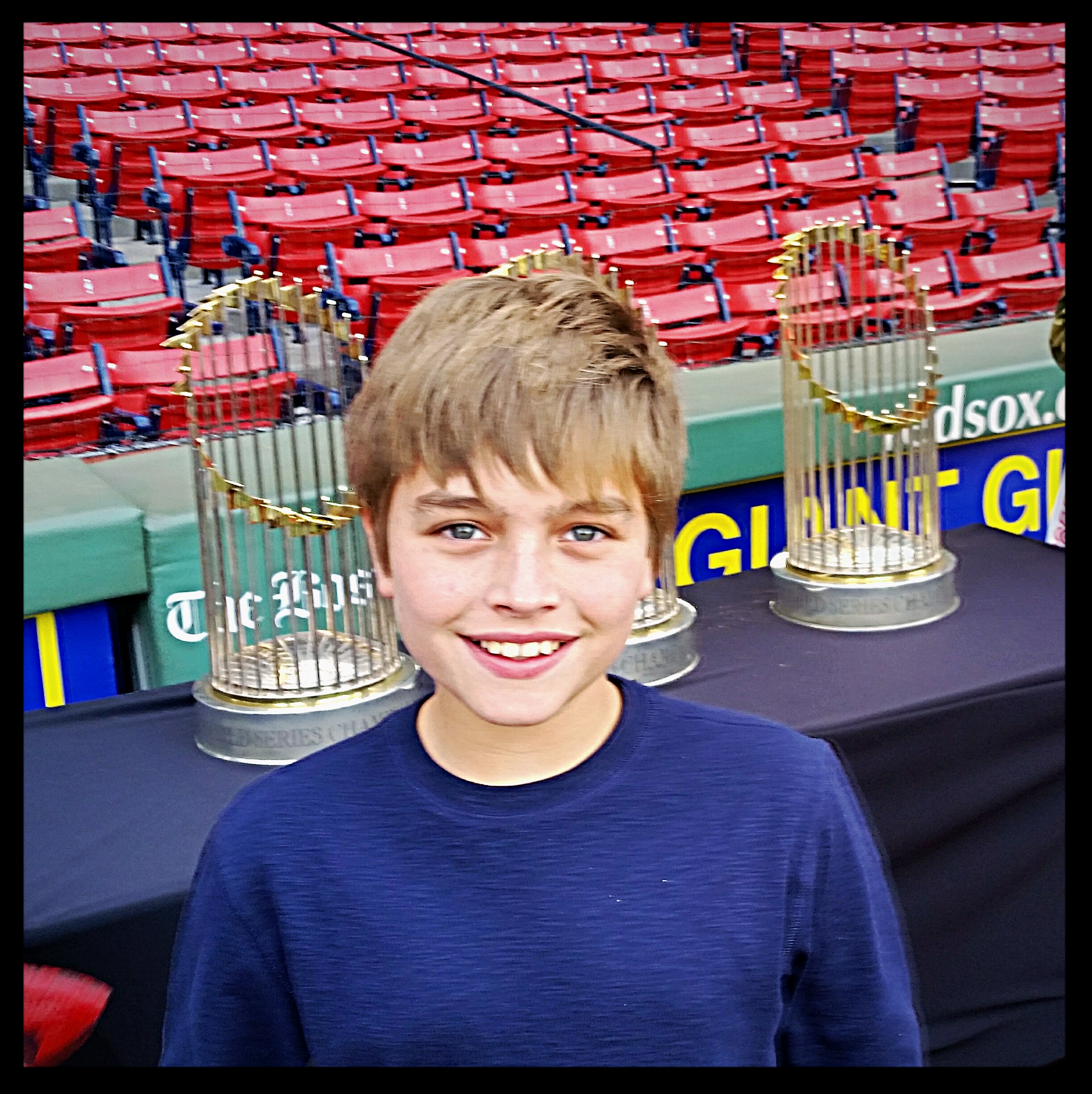 Zachary with all three of the Red Sox World Series Trophies from this millennium: