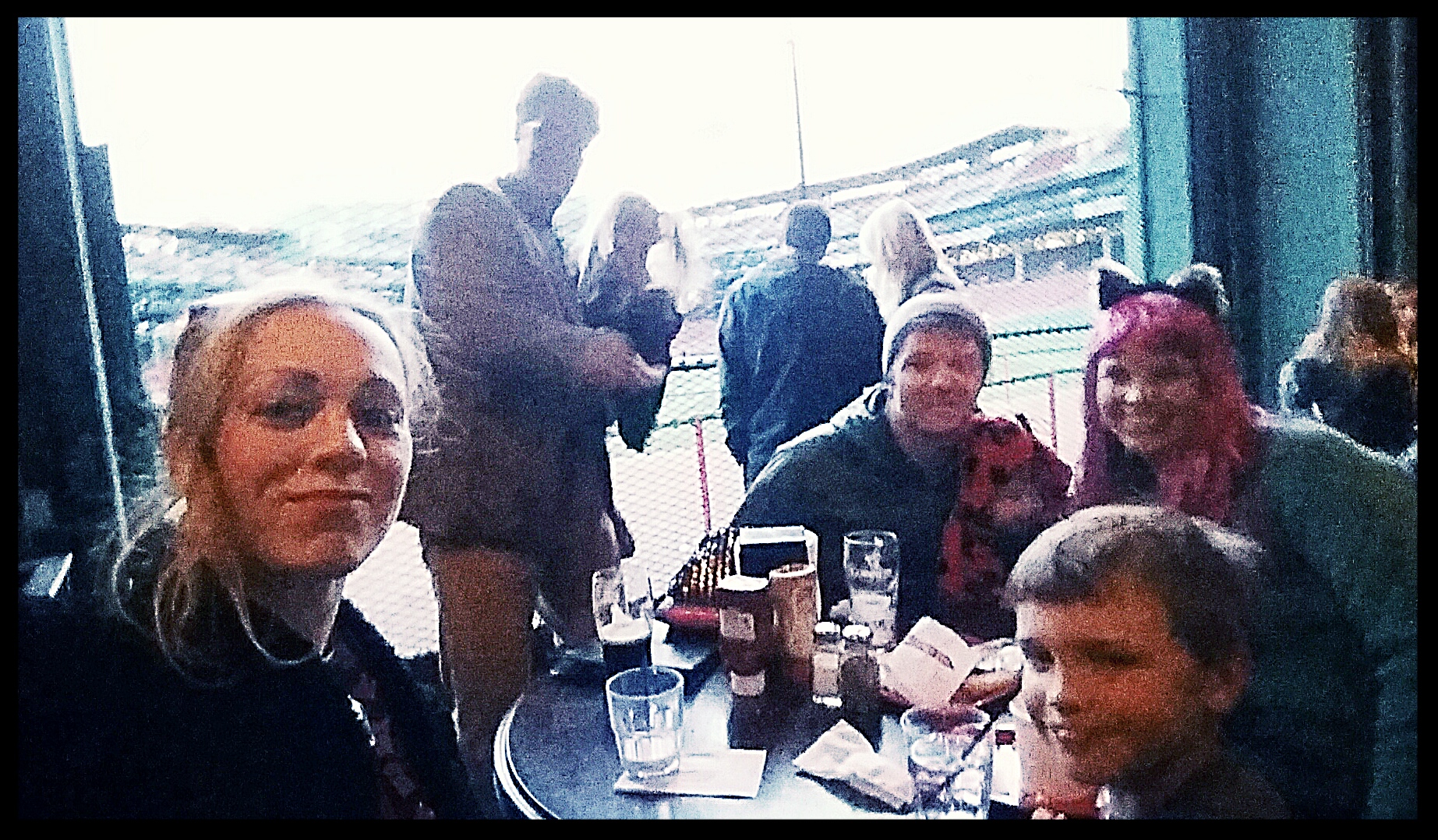 If that wasn’t magic enough, when I was finally all packed up and (the last to be) leaving the park, Paul came to fetch me. He *knew* when I was done because he could *see* me inside the park from this place heretofore unknown to me by the name of BLEACHER BAR, where if you’re lucky you can sit right next to Center Field: