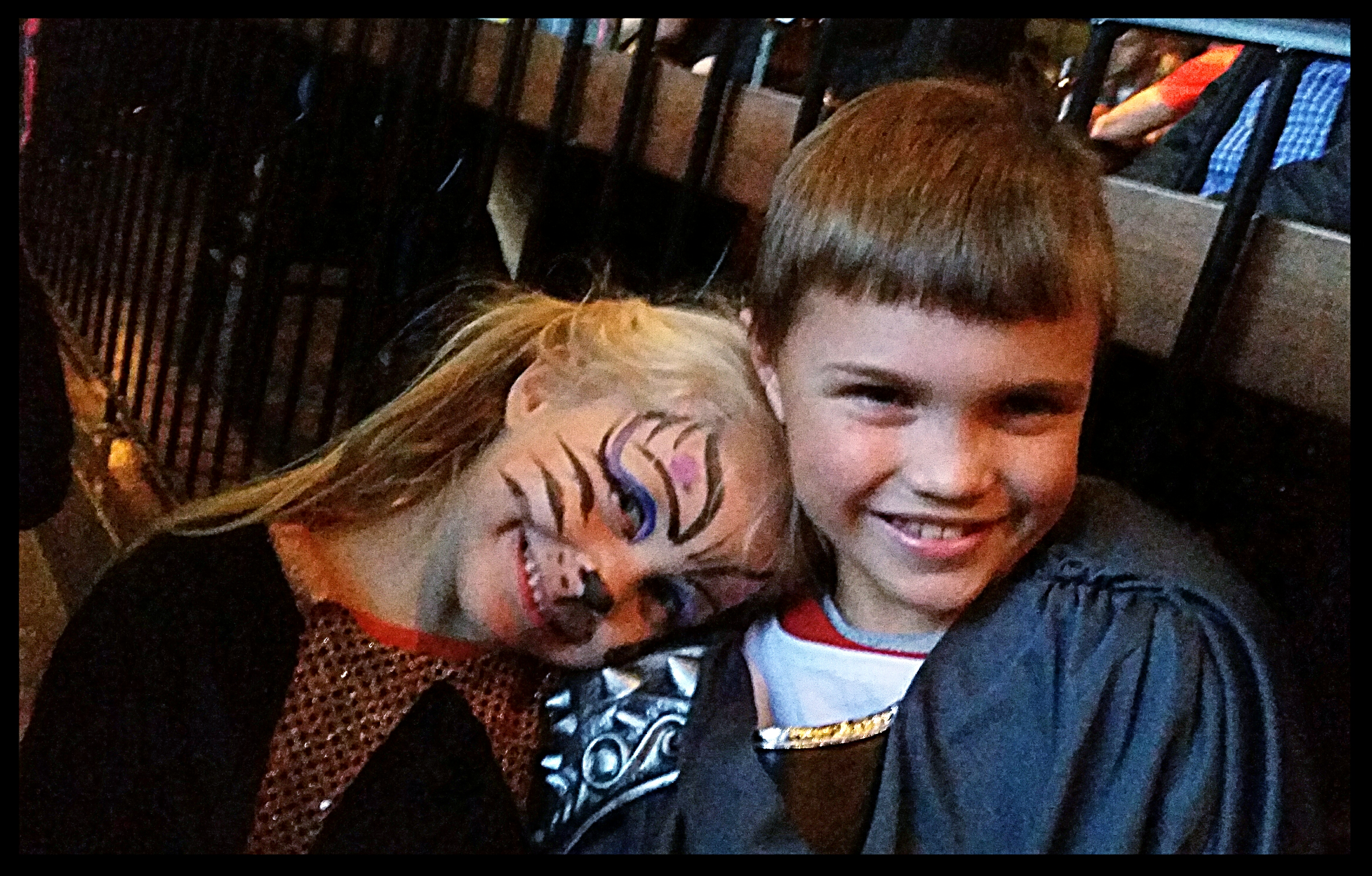 Look closely in that haunted park you will see me, Amanda, Gladiator-Miles, Ladybug-Mary and Most of James up on the Jumbotron! You will also see that corpse *sitting UP.* Spooky!