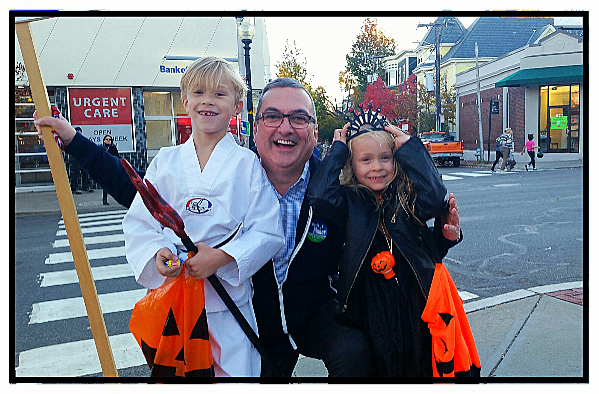 Mayor Maher was out campaigning for re-election this coming Tuesday. Paul saw this photo and asked, “What is Gavin standing on?”