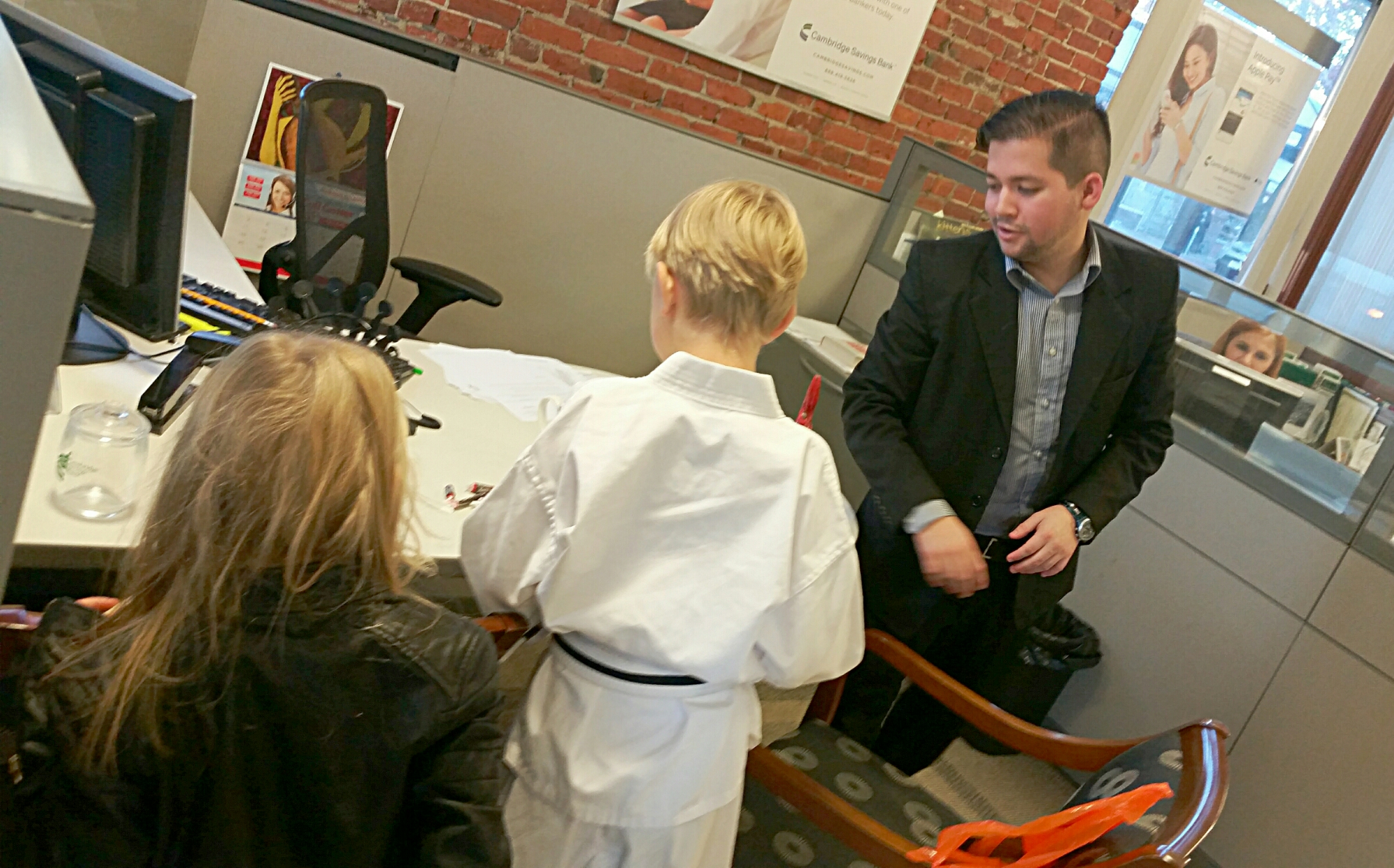 My bank buddy Eder takes it upon himself to go dig some candy out from the back office somewhere. Kids gotsta get paid! (In candy of course.)