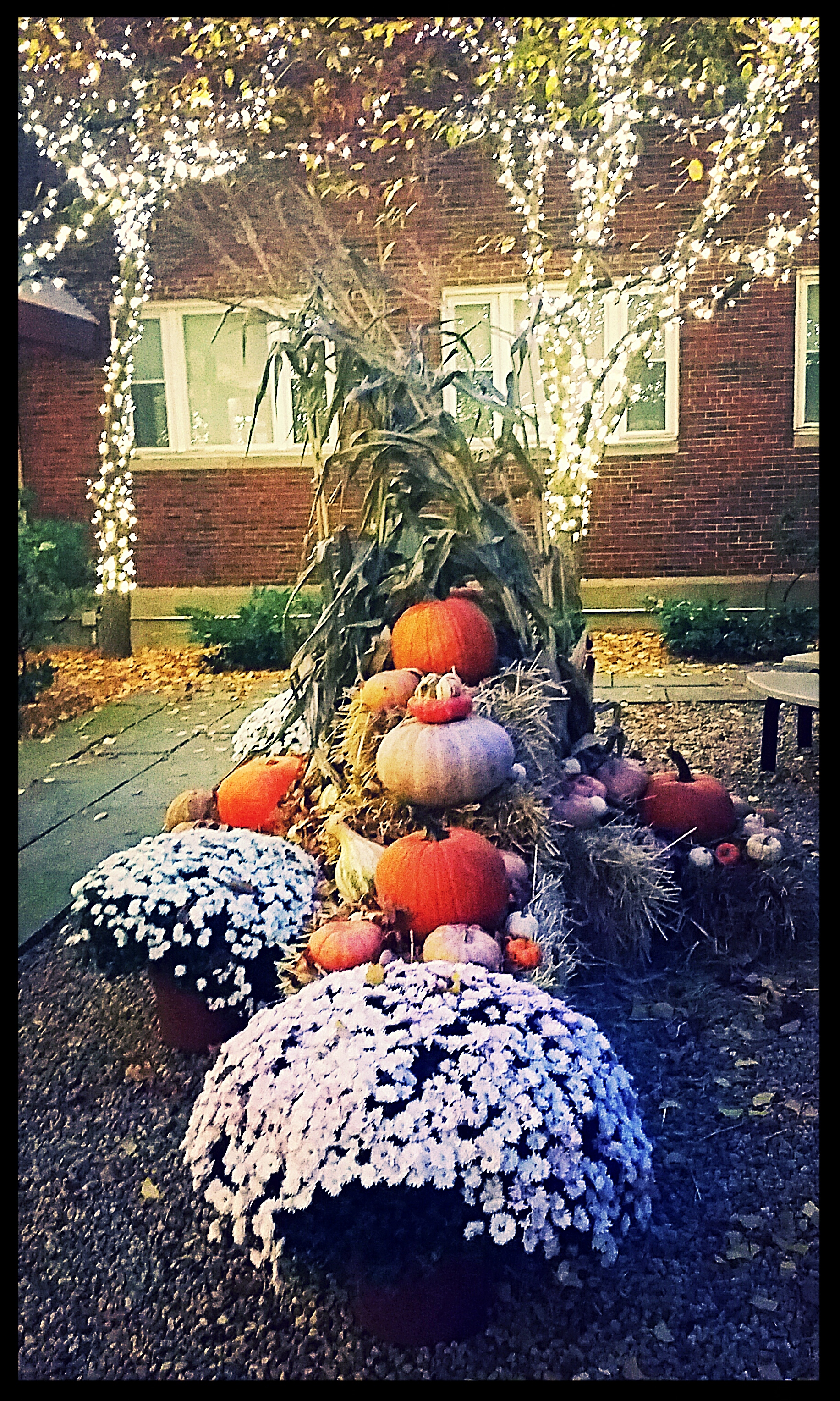 The hospital also gave her a rose, and I collected some bright Ginko leaves from the courtyard.
