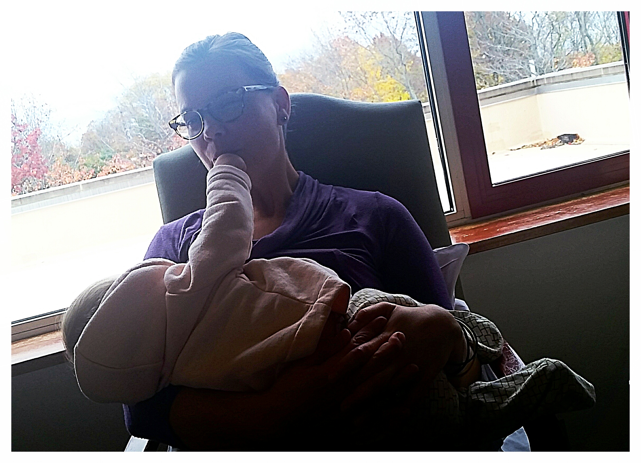 [I know, we’re on the floor in the hospital waiting area. Don’t worry, it’s not only a really lovely and clean hospital, New England Baptist is STRICTLY orthopedic, no E.R. or infectious disease. ]