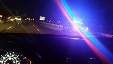 I decided not to panic. Cars jammed up my butt in the middle lane and resigned to irk by on either side as I dialed 911. The dispatch officer was actually calm and supportive, figured out my location and sent in the troop. He arrived minutes later, blocked off a lane, reversed across it behind me, and loud-speakered, “STAY IN YOUR VEHICLE. I’M GOING TO PUSH YOU TO THE BREAKDOWN LANE. PUT IT IN NEUTRAL” and gently wammed me over, then got out and pushed my car some more himself. Dude!