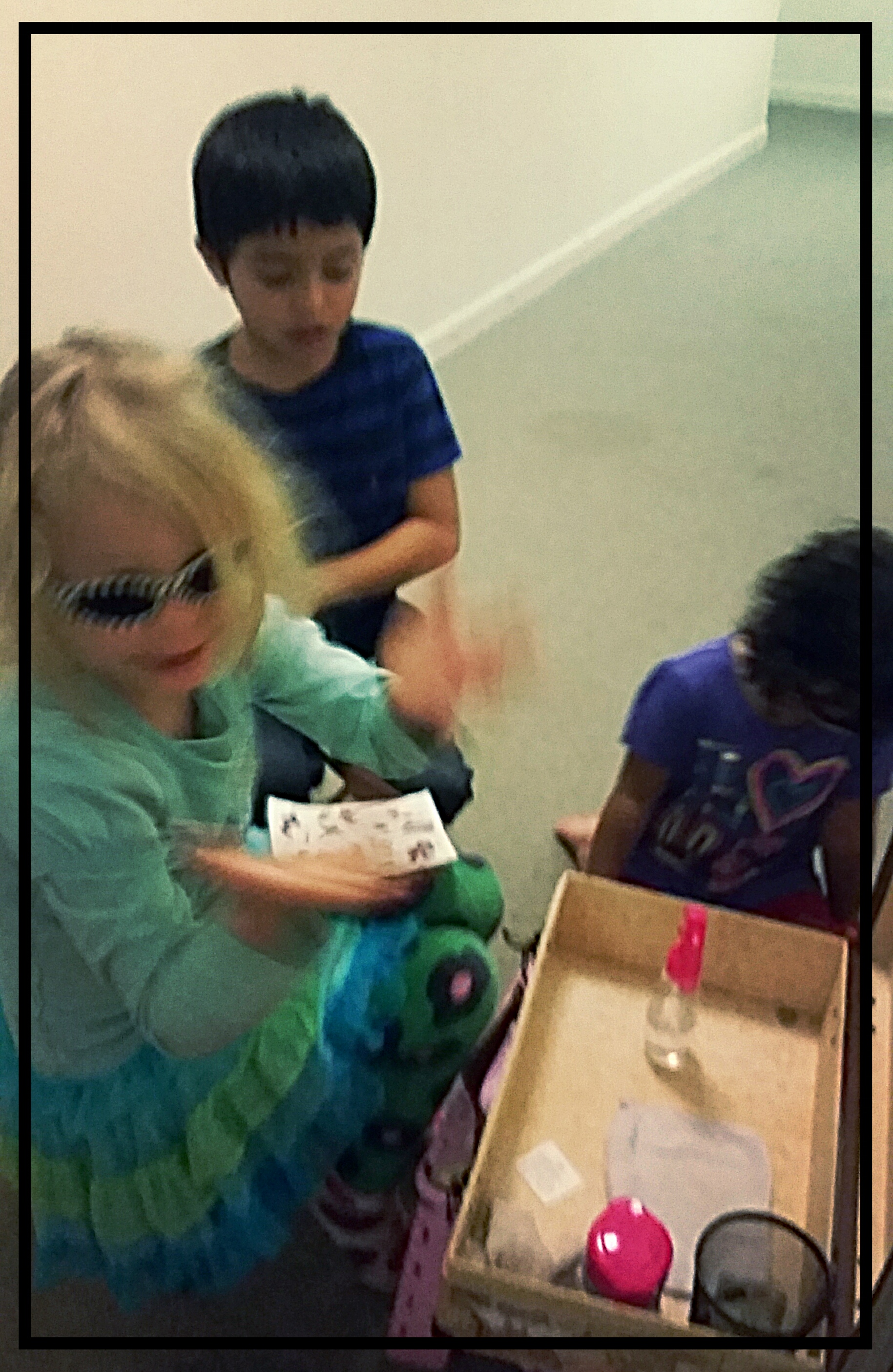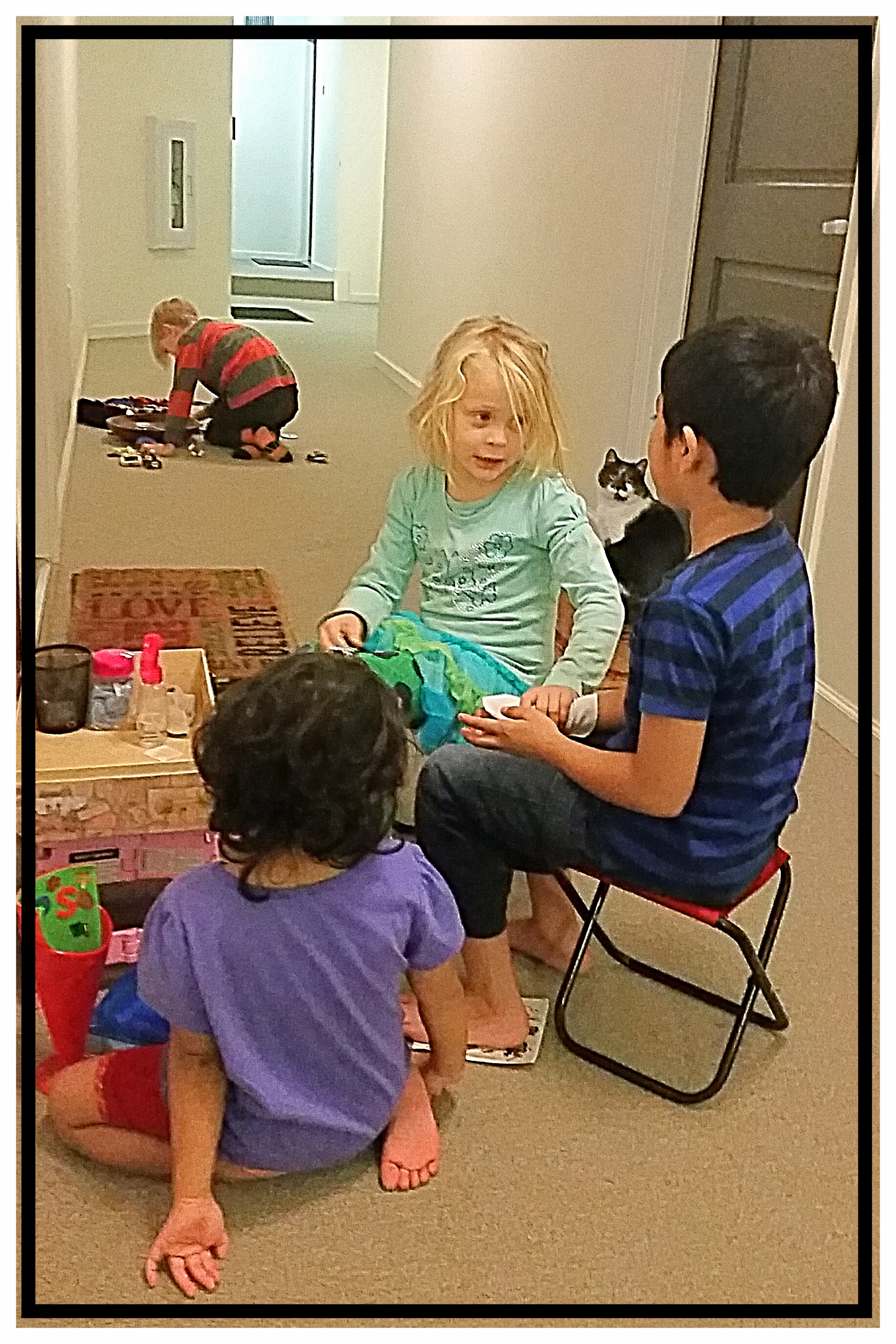 In a time when my awareness has become particularly sensitive to the intrusion of technology and commercialism in our lives, and when I am in calm but passionate pursuit of Mindfulness and making peace with the present, you can imagine how delighted I was to see ClaraJane cast about through several activities and finally dig out her old Tattoo Parlour. It’s been several months, so it was refreshing to see, and call me a sucker but there is just something awesome about seeing a four year old set up her stuff and OPEN FOR BUSINESS.