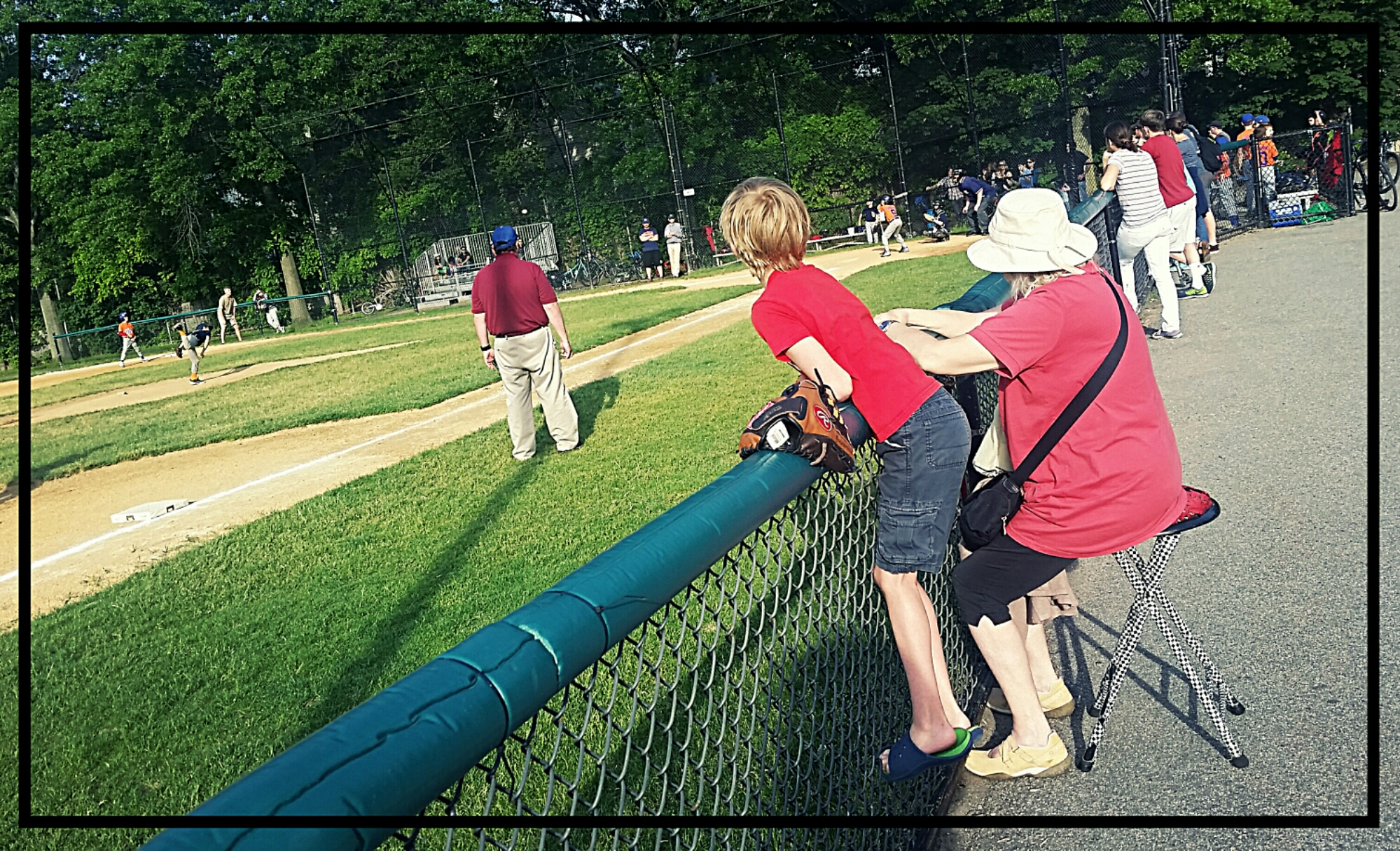 Gavin & Bubble Wow cheering on Miles up at bat.