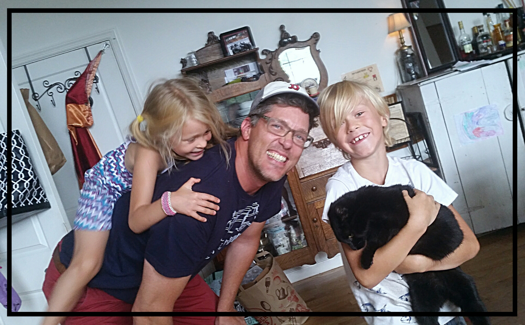 Afterwards he came home to a (somewhat) clean home which we immediately started littering again with the home made confetti the children made specially for the occasion. In celebration they also set about littering his body with their own bodies (see above).