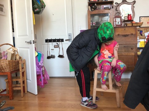 “Cuz’ you’re six!” Plain and simple. Sorry toots. But here’s a hug from your (considerably older) brother, who is not going to be saddled with responsibility for another person on his first voyage.