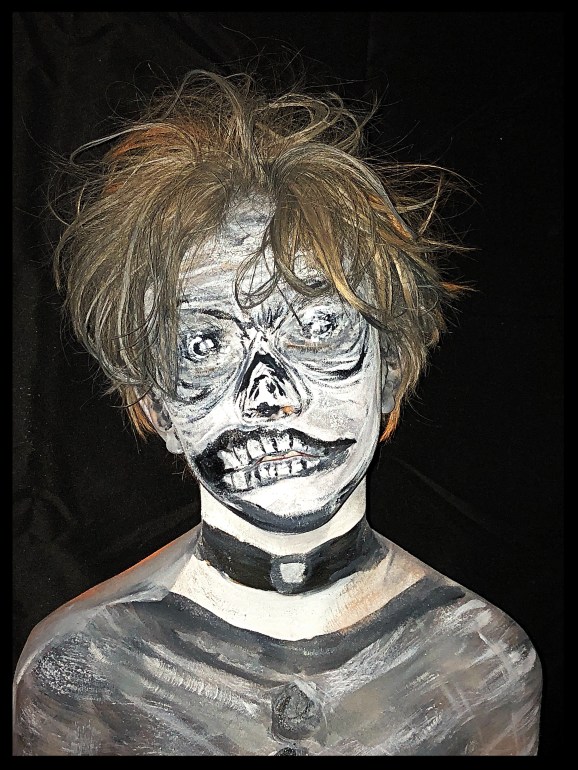 Agreed, Jane Ann! After I posted this he very sweetly asked if I knew he was just messing around. I told him I did and that it is healthy to dabble on the dark side a little. Coincidentally a very disturbing lady painted him over at a face painting convention the previous weekend, so I just put these two together. No worries Auntie; he’s still our wonderful hilarious, loving and thoughtful boy!