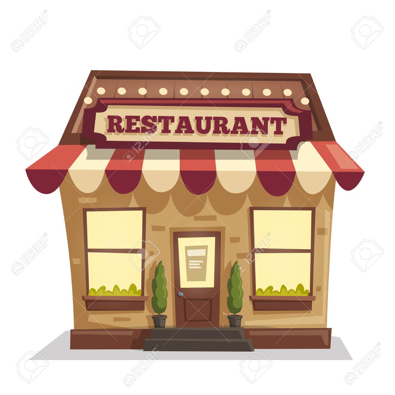 Restaurant or cafe. Exterior building. Vector cartoon illustration. Food and drink