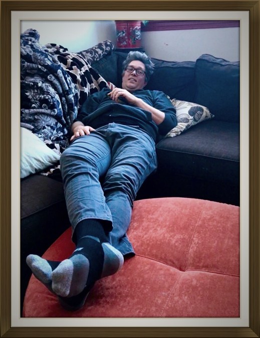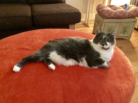 I’m not sure how I feel about it, but amidst decluttering and decluttering and decluttering the domicile, we found this enormous OTTOMAN to apparently FILL a great portion of our newly liberated living room. And I’m the one who went to get it and bring it home. Either way here it is: