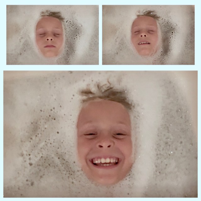 Waiting to rinse my daughter’s hair during her post-camping, back-to-school bath, and what do I see?