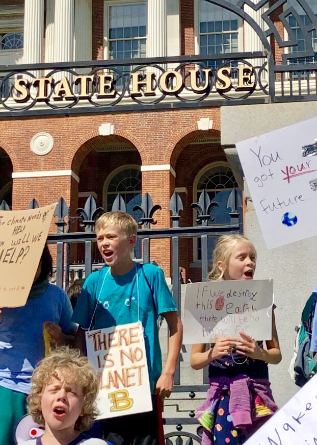 Gavin and ClaraJane lifting their voices outside the Massachusetts State House.