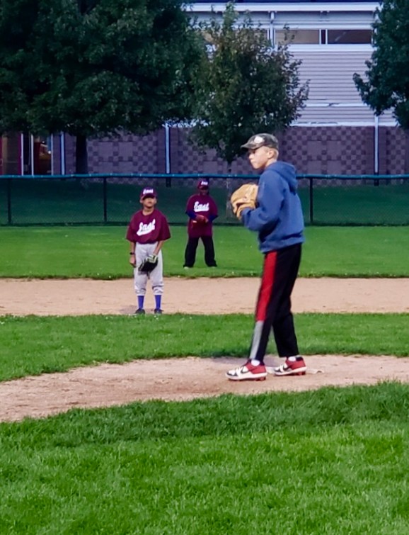 Now that Fall is underway and I finally remember to sign him up, Boy had his first “Fall Ball” outing today. When he showed up for the Blue Team, the Maroon Team didn’t have enough players, so they traded him to them. And he PITCHED! He also hit a one run DOUBLE. (I later found out that was the only scoring run of the game.) Oh yeah and on defense he played FIRST BASE. (!)