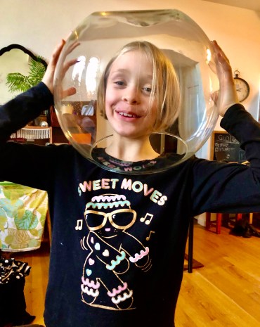 Today’s after-school absurdist break is brought to you by our historic heirloom family fishbowl, and by the mind (+ butt) of ClaraJane, who wants you to know she does not in fact need you to feed her. “Because,” she says actually, “I can feed myself.”