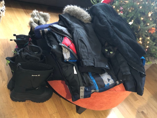 Prepping for our annual retreat to a winter yurt in Maine, I collect the winter clothes into a pile with one particular peculiarity:
