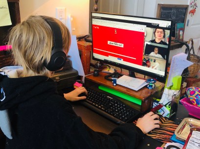 Next Up: After doing math all morning, ClaraJane video conferences with her actual school teachers.