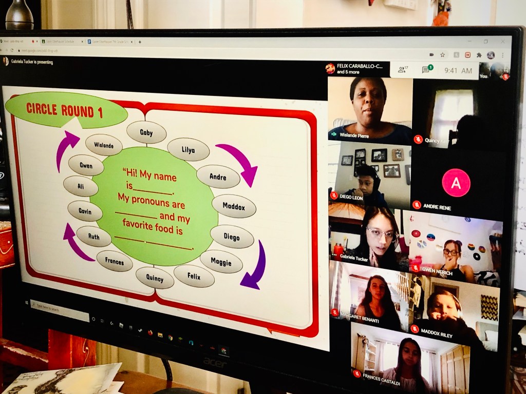 Introductory circle in Gavin’s new 7th Grade advisory class.