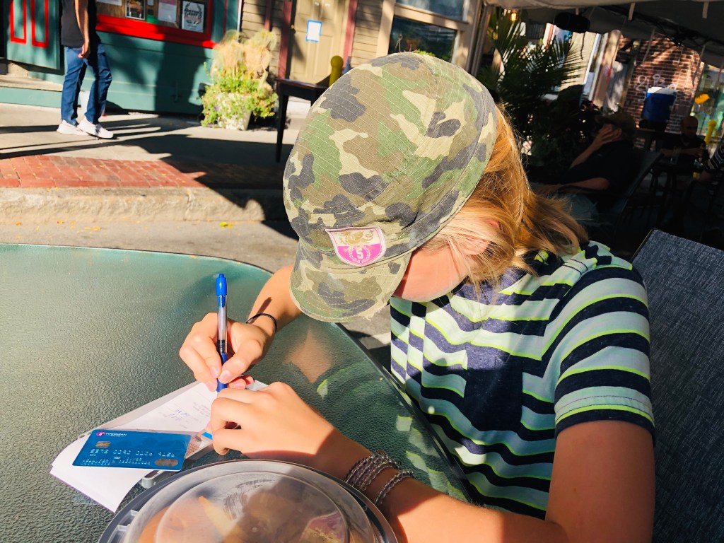 My schedule is so open today it doesn’t even appear on the weekly view of my Google Calendar. After some substantial adulting online and in person, Manmeat makes other plans and I take the kids. We head out to our favorite establishment for a treat in celebration of getting through this first week of school. Also Gavin’s great performance in baseball last night.