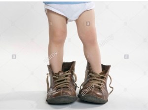 BOY: Here! [he says helpfully, extending out both feet wearing slippers.]. Have yours!