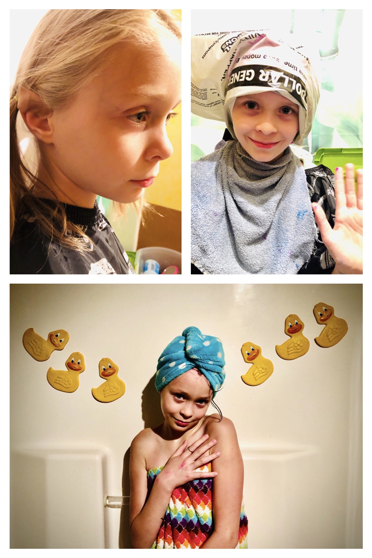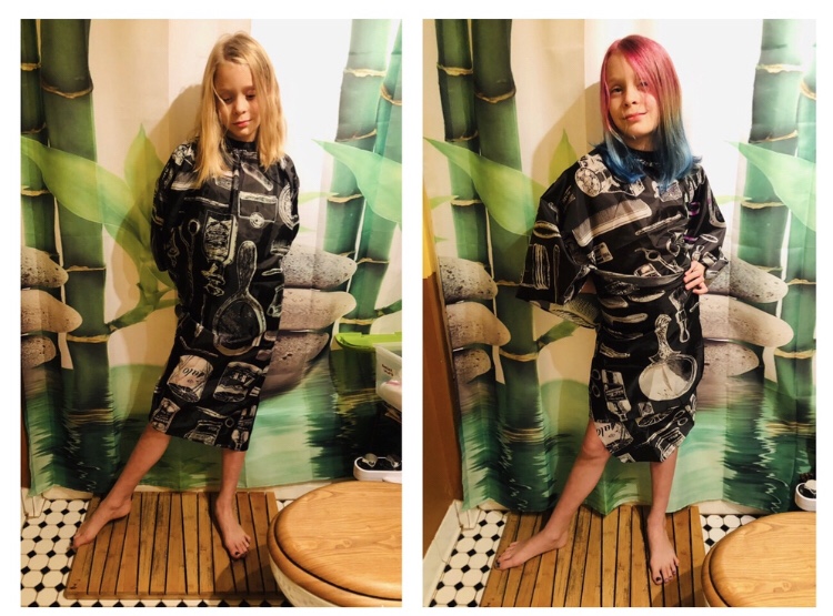In “celebration” of ClaraJane “catching up” to her 4th Grade distance learning schoolwork this fall, we fulfill her long-standing wish to dye her hair.