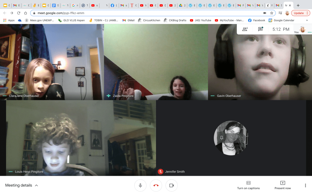 - At 4:45pm he emailed everyone the *link* for a Google Meet, so the kids could log on to see and chat with each other while playing.