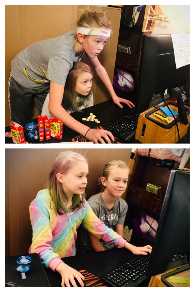 As if for a special treat, the kids decide to play a video game (Minecraft), together!