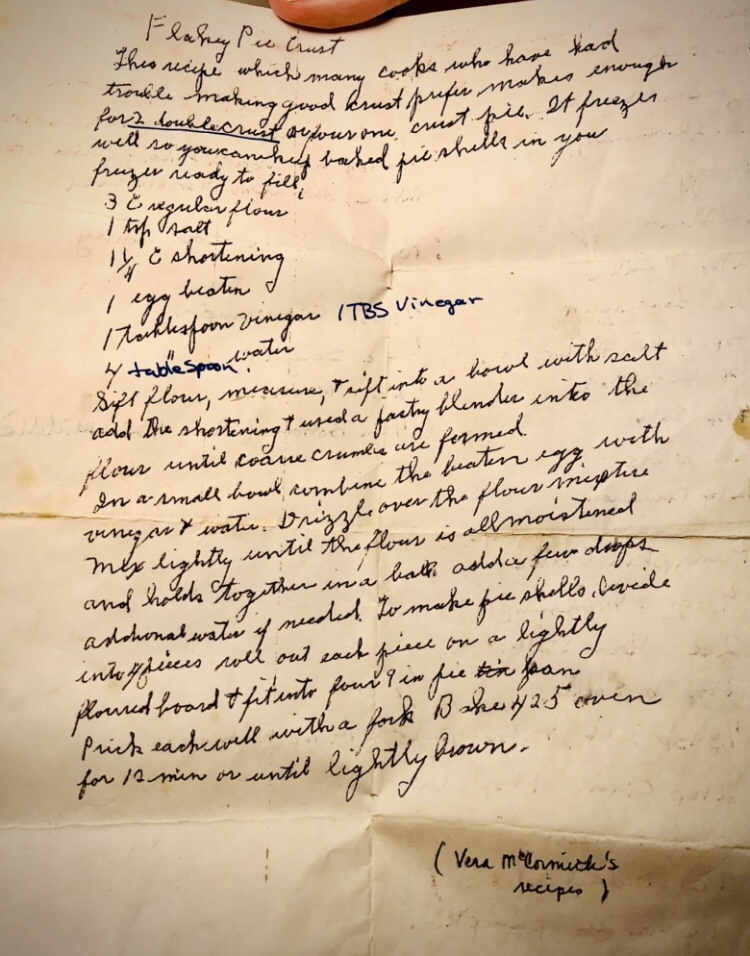 Aunt Vera McCormick helped cook for two generations of Oberhausers.