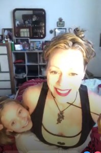 AT RISE: Mom and CJ are tickle-giggling on the bed. Mom is on top of ClaraJane sniffling and whuffling her. ClaraJane starts stroking Mom’s nose gently, like we do the bunny named Boomer who famously fell asleep one time while we did that and then woke up startled.