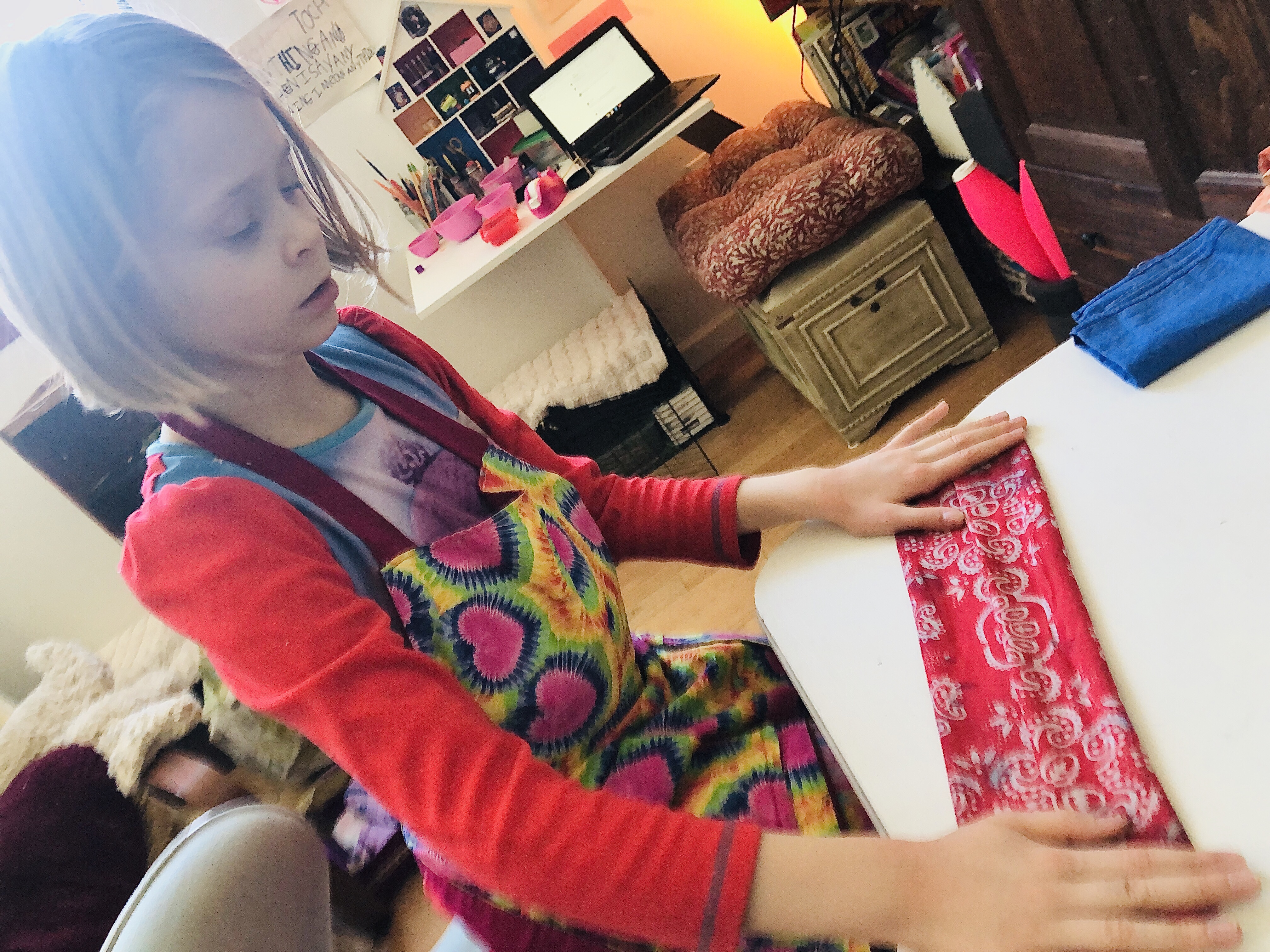 Though I *am* in the process of learning to sew reusable cloth masks, ClaraJane and I tried our hand at Arts and Crafts for the global pandemic.