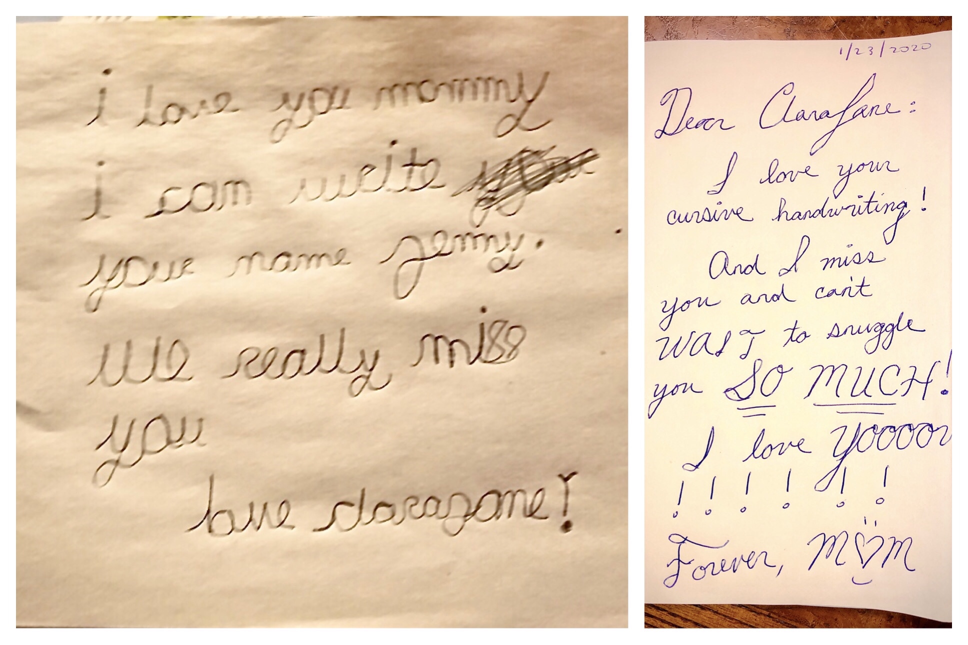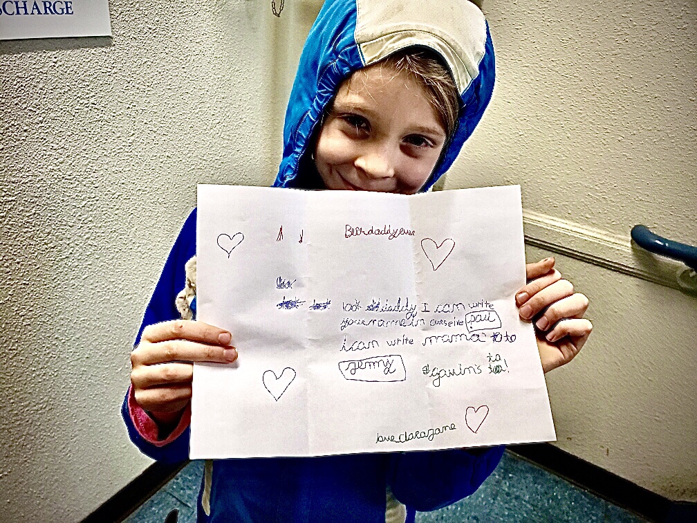 So here I am at a medical clown conference in Dallas, Texas, away from my precious flamly for eight days this week, and it is my daughter –with Daddy’s help– who is heart-beating the drum of longing the loudest. Here are some of the gifts I am receiving: